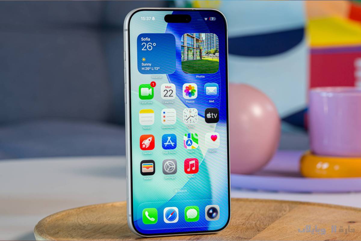 تدعم الشاشة الرئيسية تخصيص أيقونات التطبيقات — يمكنك تكبير الأيقونات وإخفاء أسمائها، اختيار لون تمييزي لجميع الأيقونات، التبديل بين الوضعين الفاتح والداكن، وهناك نمط جديد أحادي اللون بخاصية الشفافية السائلة.