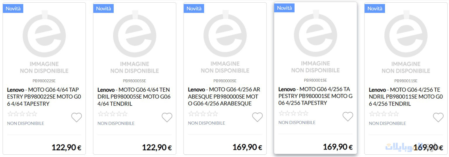 يبدو أن هاتف Moto G06 سيتوفر بثلاثة ألوان، بناءً على هذه القائمة تحديدًا، وهي Tapestry وArabesque وTindril. تبدو هذه الألوان وكأنها ألوان معتمدة من Pantone، وهذا يعتبر امر غير مفاجئ نظرًا لشراكة موتورولا الطويلة مع Pantone.