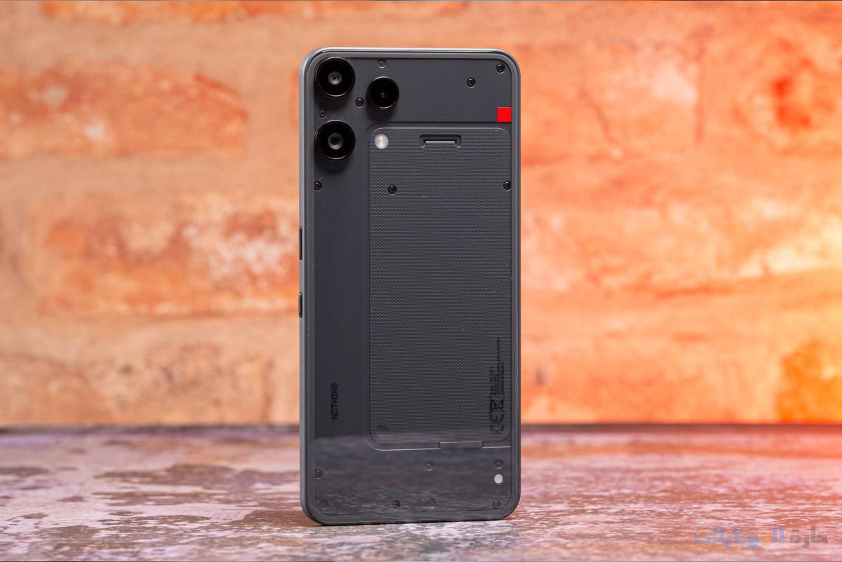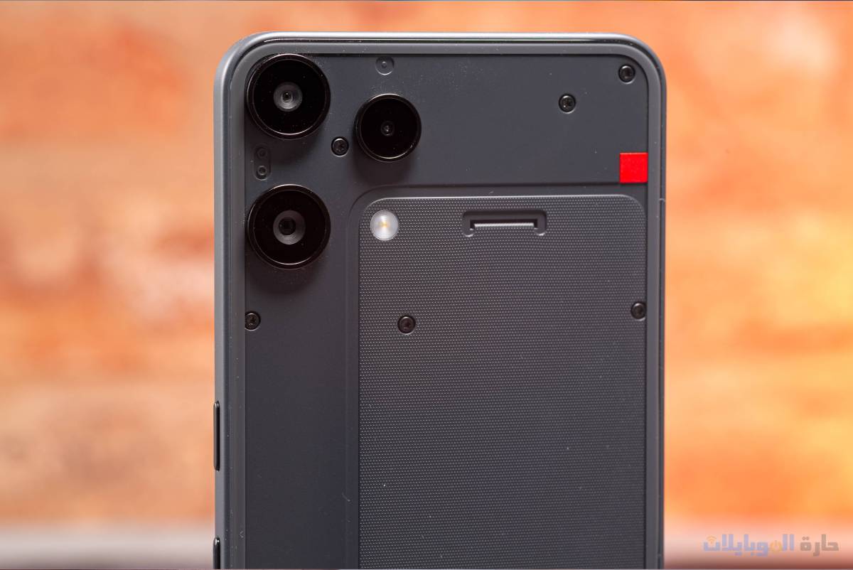 ومن الخلف، تأتي الكاميرات الثلاث داخل حلقات بارزة (Rings) تشمل العدسة الرئيسية والـ Ultrawide والـ Macro، ويحيط بها فلاش LED، مع واجهة Glyph في نسختها الأساسية التي تعتمد على LED واحد فقط موجود في الركن السفلي الأيمن، يُضيء عند الإشعارات المختلفة مع دعم وضع Flip to Glyph الذي يمكنك من تخصيص قواعد الإضاءة كما تُحب.