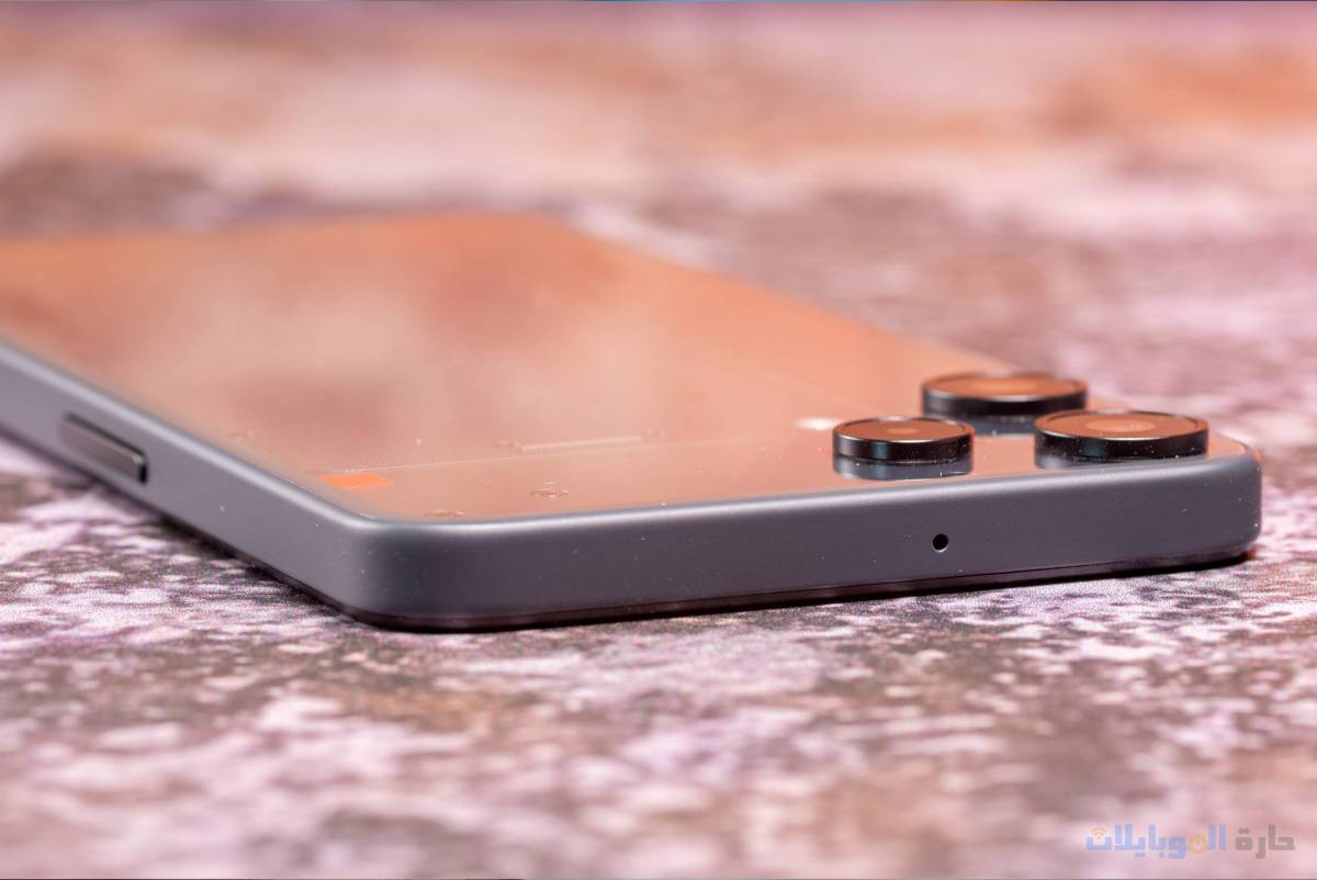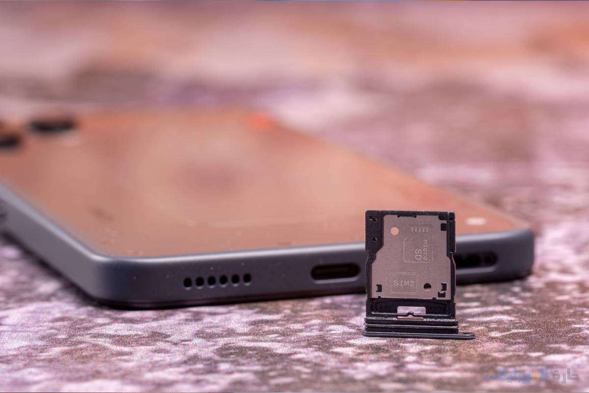 يحمل الجزء العلوي من الهاتف Mic واحد فقط، بينما يضم الجزء السفلي السماعة Speaker، وMic آخر، ومنفذ USB-C، وTray لشريحتي nanoSIM مع دعم microSD.