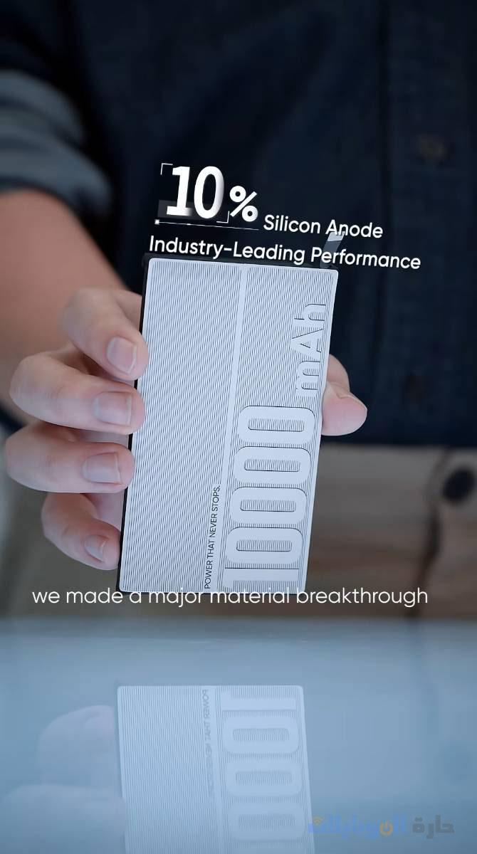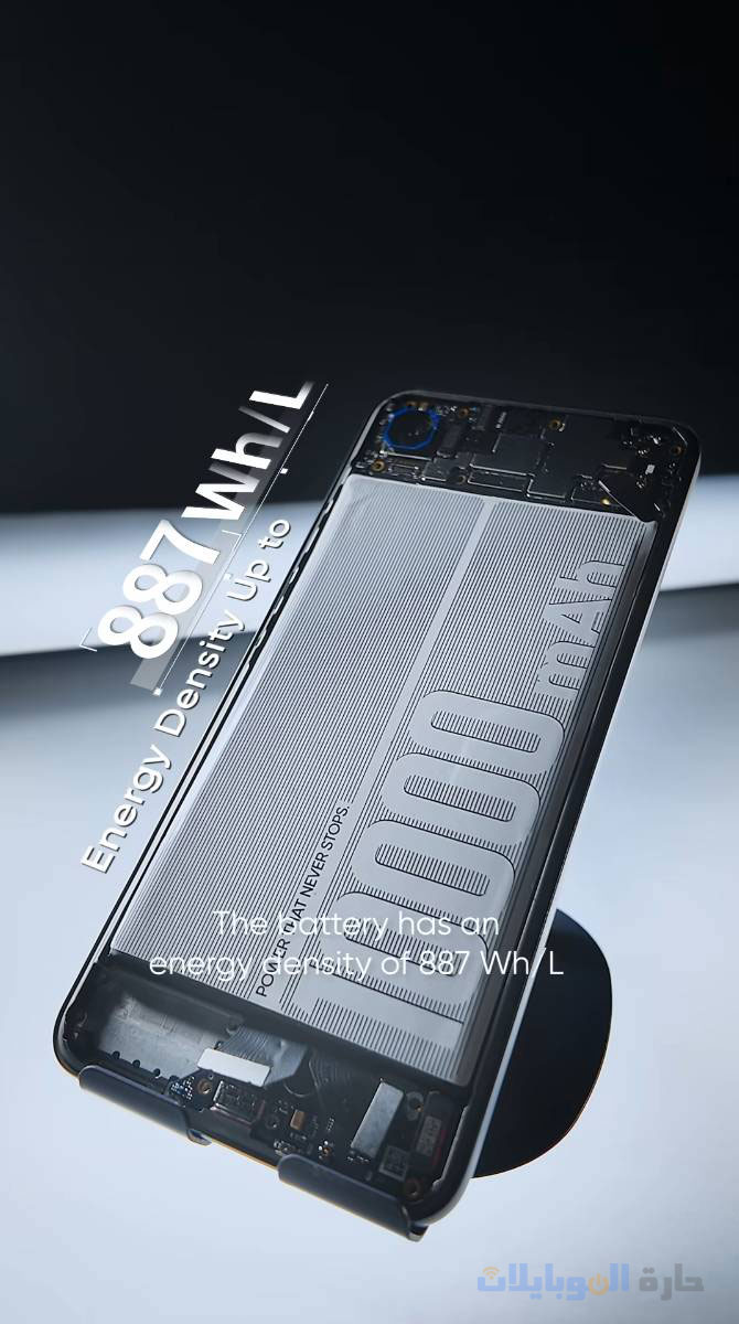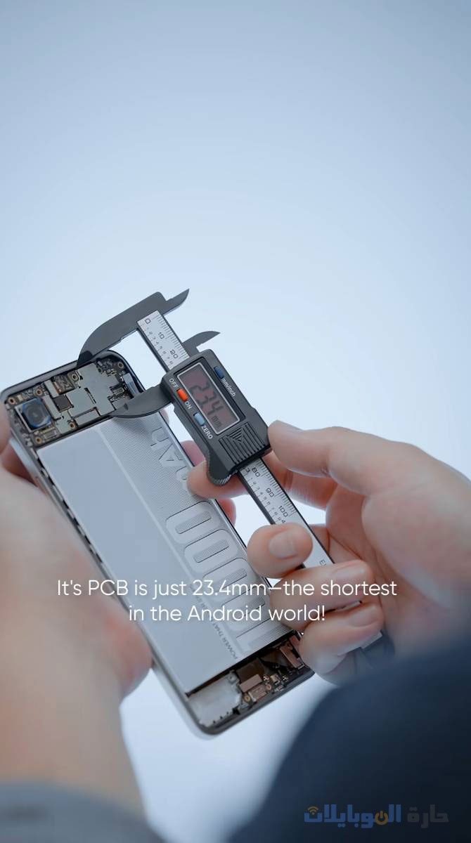 و ما يُثير الإعجاب في هذا النموذج الأولي هو سُمكه البالغ 8.5 مم فقط و وزنه البالغ 215 جرامًا. استخدمت Realme بطاريةً ذات قطب سيليكون موجب بنسبة 10%، وحققت كثافة طاقة تبلغ 887 واط/لتر. ولزيادة سعة البطارية الداخلية، قلّصت الشركة ارتفاع اللوحة الأم للهاتف إلى 23.4 مم فقط – وهو أصغر ارتفاع في هاتف يعمل بنظام Android حتى الآن!.