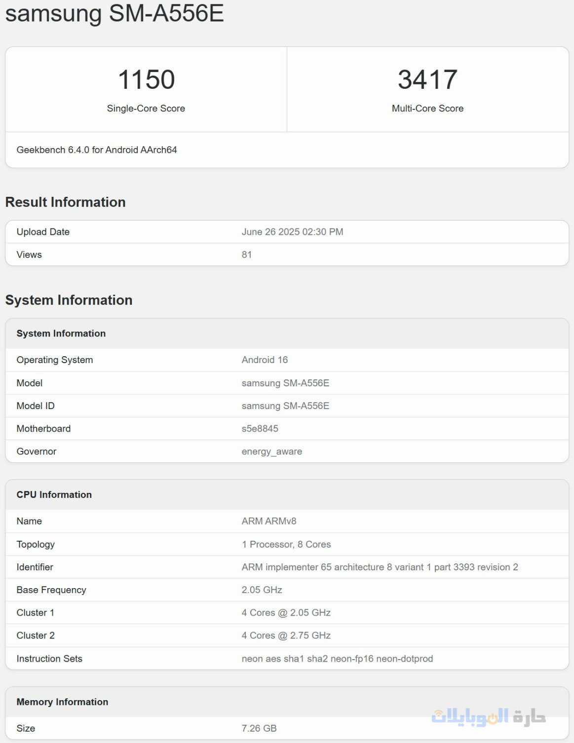 نقول ذلك لأن هاتف Samsung Galaxy A55، الذي يحمل رمز النموذج SM-A556E، تم رصده على Geekbench يعمل بنظام Android 16، مما يشير إلى أن Samsung بدأت العمل على One UI 8 لهذا الهاتف الذكي الذي يعمل بشرائح معالجة من Exynos 1480.