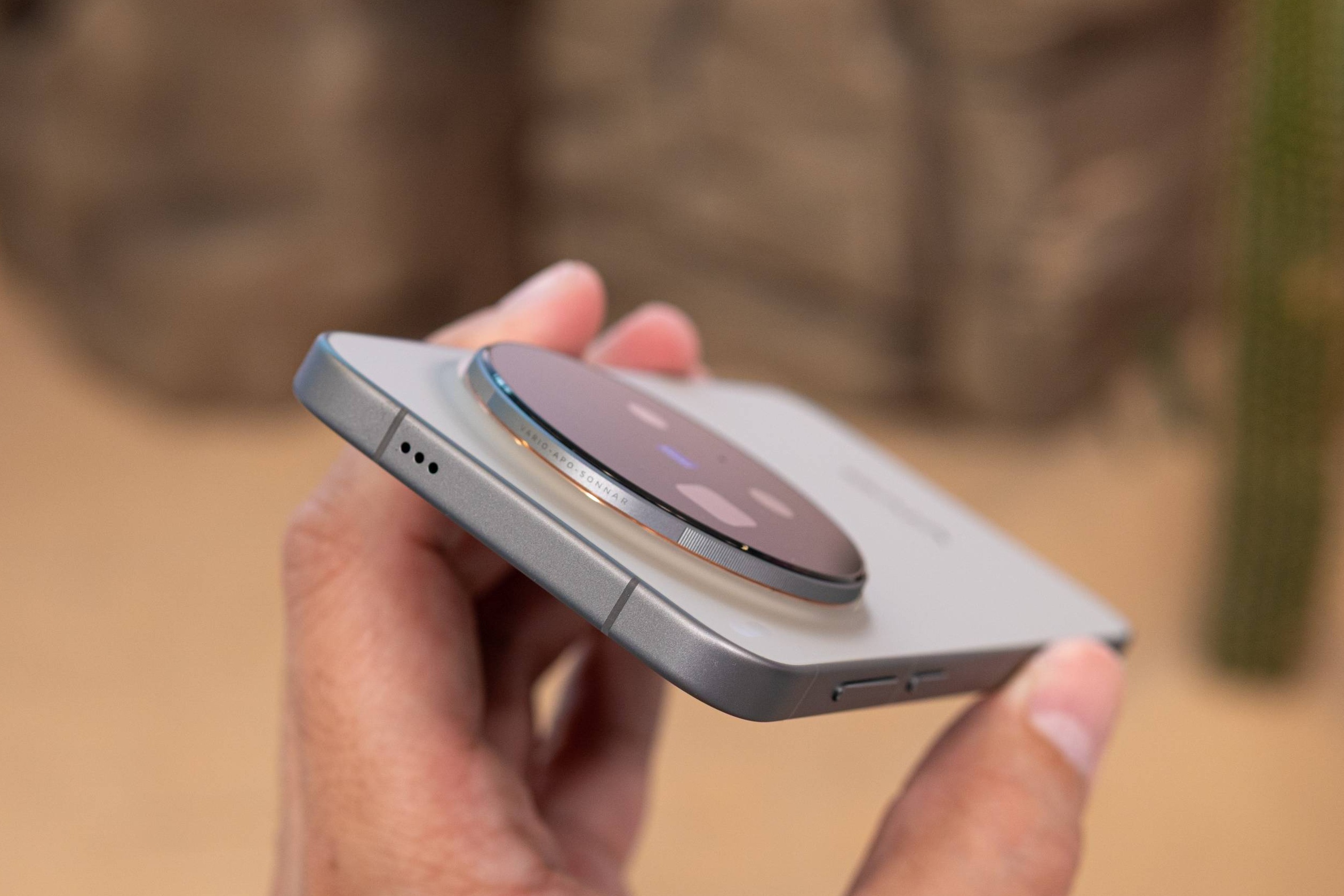 تظل وحدة الكاميرات الخلفية الضخمة هي العنصر البارز في الواجهة الخلفية، مع شعار ZEISS الصغير في المنتصف كدلالة على التعاون البصري المستمر بين الشركتين.