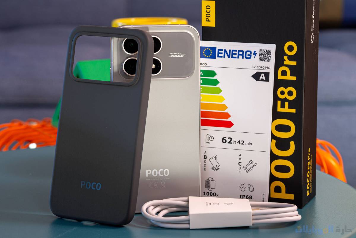 يأتي Poco F8 Pro في علبة بيع قياسية تحتوي على:
